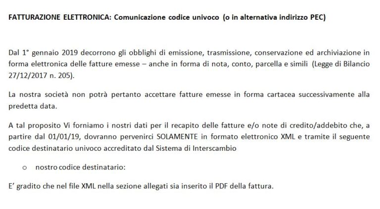 Comunicazione pec fattura elettronica - Tutorial e guide per le ... Lettera di esempio ai clienti sull'invio di fatture via e-mail Con il nuovo sistema di fatturazione elettronica, i contribuenti dovranno generare fatture seguendo le linee guida stabilite dal Consiglio GST. Questa guida è la vostra chiave per capire il processo di creazione di una fattura conforme. Ecco cosa dovete sapere. Una fattura elettronica, o fattura […]