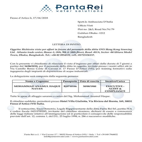 Lettera di invito per affari word